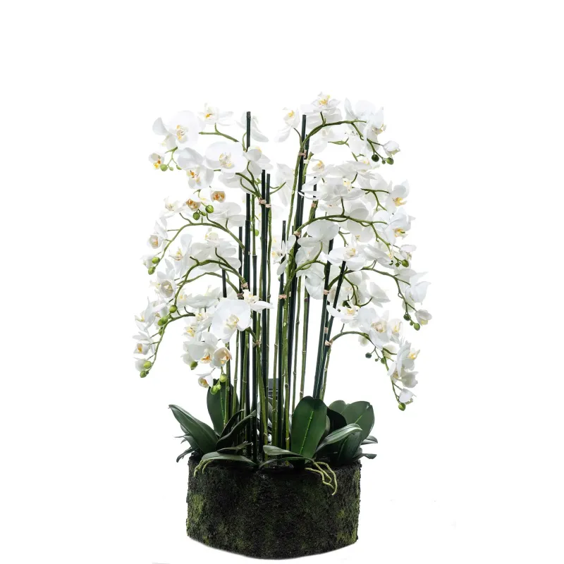 De Phalaenopsis Orchideeënplant is een decoratie van buitengewone elegantie, gekenmerkt door realistische details en nauwgezette zorg bij de creatie van elke individuele bloem. Verkrijgbaar in twee maten, 80 cm en 90 cm, past hij zich perfect aan verschillende omgevingen aan en brengt hij een vleugje verfijning.