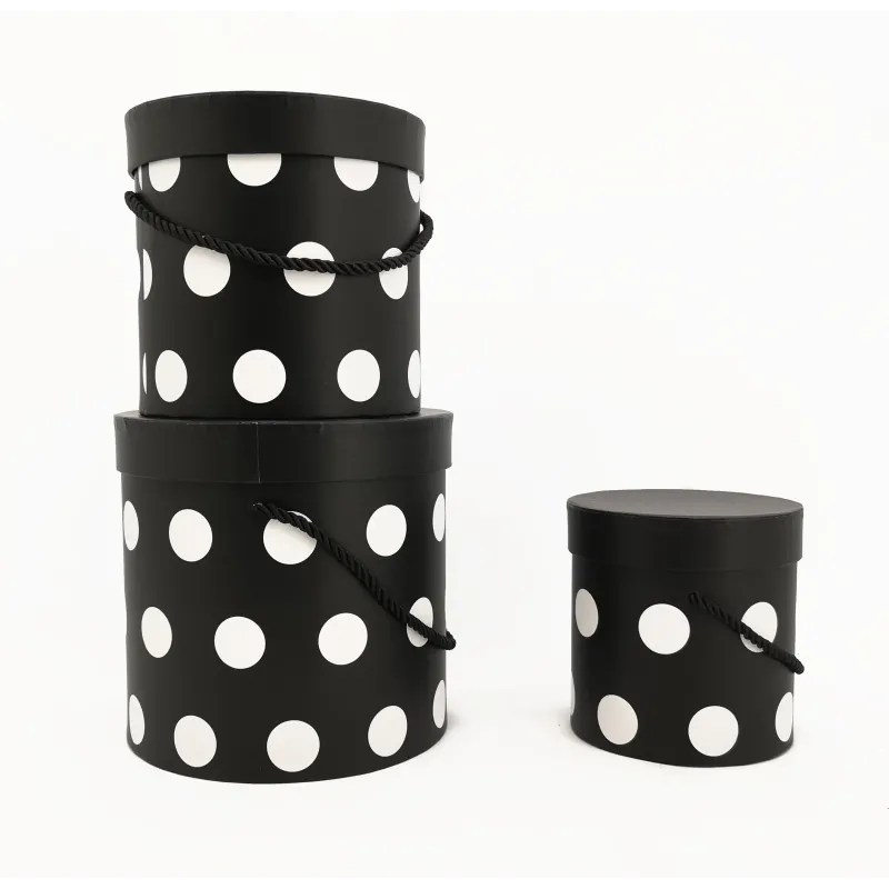 Set van 3 hoedendozen met witte of zwarte stippen, ideaal voor het verpakken van bloemen, accessoires, textiel of cadeauartikele