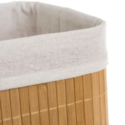 Rechthoekige mand gemaakt van natuurlijk bamboe en binnenvoering van 30% katoen en 70% polyester.