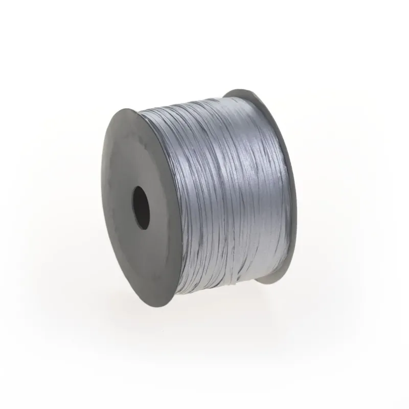 Papieren raffialint, verkrijgbaar in drie matte en effen kleuren, waardoor dit lint uiterst veelzijdig is voor elke decoratie. Het materiaal waarvan het is gemaakt, is vergelijkbaar met papier, hoewel het veel resistenter en hanteerbaarder is dan het laatste.