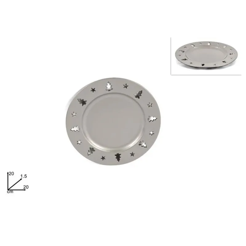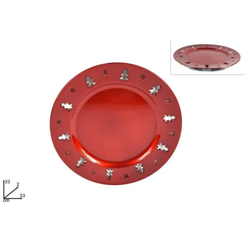 Met kerstversieringen gegraveerd in de rand.