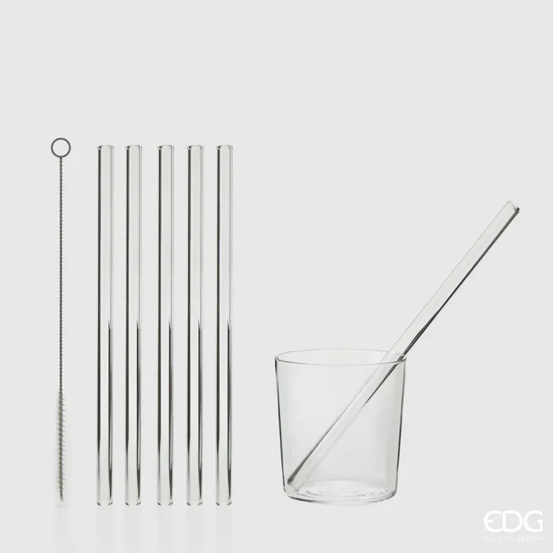 Set bestaande uit 6 Glazen Rietjes voorzien van een schoonmaakborsteltje.