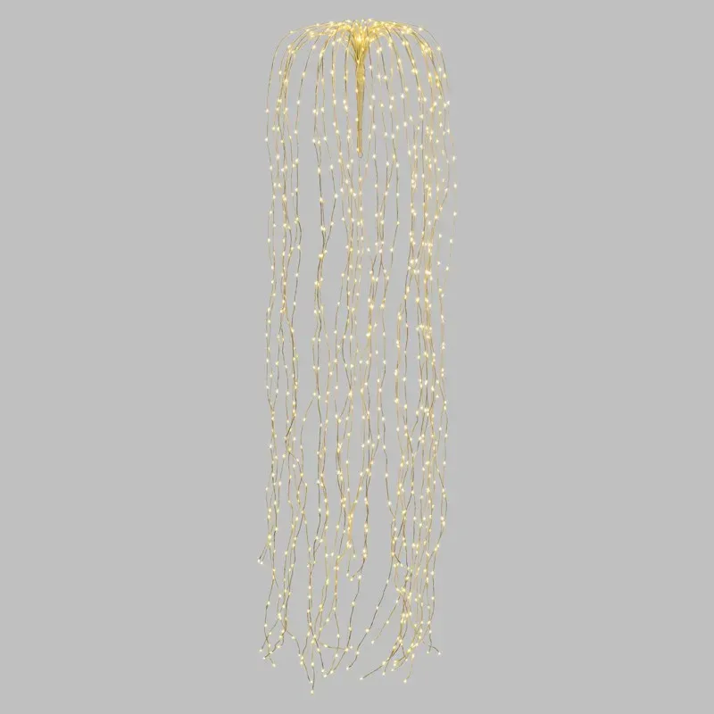 Zilveren metalen kabel, warm wit vast licht, 32 kneedbare takken, buiten- en binnengebruik, witte stroomkabel 4mt, verkrijgbaar in de varianten H120cm met 480 LED's of H200cm met 800 LED's