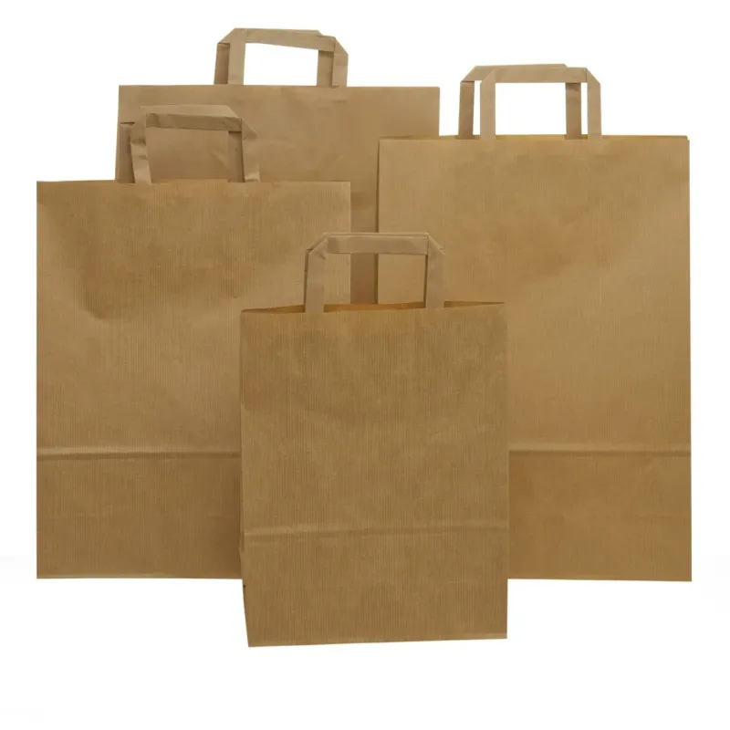 Wanneer u op zoek bent naar een stevige tas die een ambachtelijk tintje aan uw producten geeft, richt u dan op deze shopper in Havana sluitpapier: de dunne verticale gestreepte afwerking geeft elegantie en weerstand, het plat gelijmde handvat biedt een comfortabele grip, zelfs wanneer deze volledig is geladen, en de vierkante bodem blijft stabiel op de toonbank staan terwijl u de zak vult. Je hebt de keuze uit vier maten - 18 + 7 × 25 cm, 22 + 10 × 29 cm, 26 + 12 × 35 cm en 32 + 16 × 45 cm - zodat je alles inpakt, van gastronomische sandwiches tot oversized truien met dezelfde natuurlijke stijl en betrouwbaarheid.