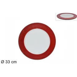 Świąteczna podkładka pod talerz z białą podstawą i czerwoną, złotą i srebrną krawędzią