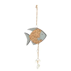 Zamykacz pakietu zawieszek w kształcie ryby. Wykonany z naturalnego drewna.