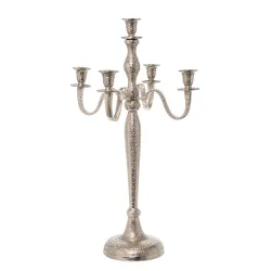 4-ramienny srebrny metalowy świecznik to idealny wybór dla tych, którzy chcą stylowo udekorować swoje pokoje i stworzyć niezapomnianą atmosferę. Przedmiot dekoracyjny, który łączy w sobie funkcjonalność i piękno, nadając odrobinę ponadczasowej klasy.