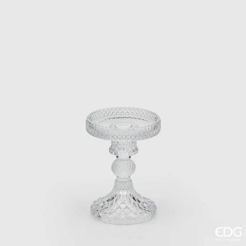 Szczególny i wyrafinowany świecznik z przezroczystego szkła.