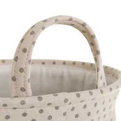 Okrągły i sztywny kosz wykonany z 60% poliestru i 40% bawełny. Wyposażony w uchwyty i wyściełane wnętrze.