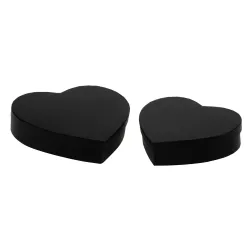 Zestaw 2 pudełek w kształcie serca cm 5 h – w 3 kolorach: eleganckie i romantyczne rozwiązanie do pakowania symbolicznych prezentów, drobnych słodyczy, biżuterii czy upominków ślubnych. W zestawie znajdują się dwa pudełka w kształcie serca, kompaktowe, ale wyrafinowane, dostępne w trzech wariantach kolorystycznych: czerwonym, czarnym i naturalnym , aby dostosować się do różnych okazji i potrzeb stylistycznych. Idealne na imprezy, ceremonie lub konfiguracje tematyczne, dodają emocjonalnego akcentu do prezentacji. Wymiary: cm. 24,5x5 h / cm. 21x5 h