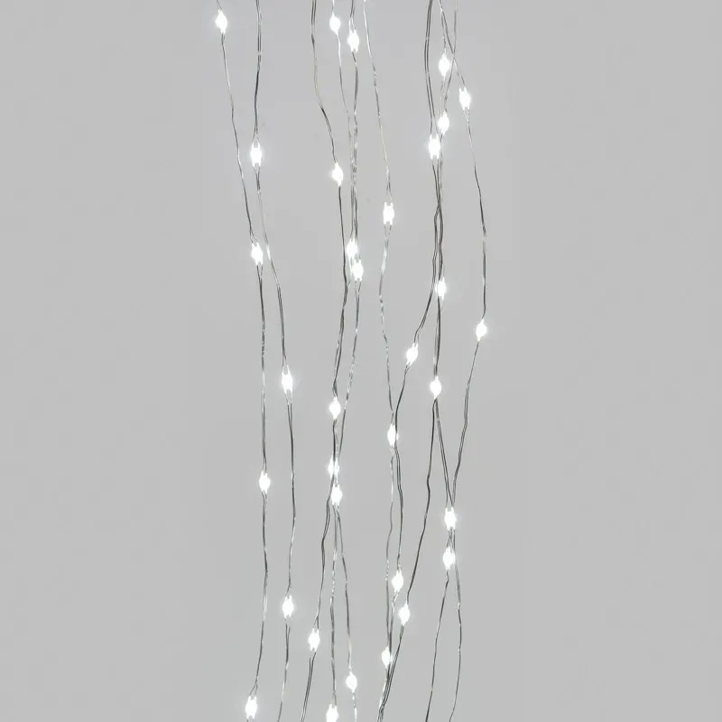Wodospad MHB 150 MicroLED HB - dostępny w kolorze ciepłej bieli lub zimnej bieli - Ø3mm Wysoka jasność, wysoka jasność Double Chip LED, Metalowa miedź Metalowy miedziany, 10 ciągów, Stałe światło, Transformator, IP44 do użytku na zewnątrz, Przezroczysty zasilający 4m, Wymiary 4 + 1,5 m.
