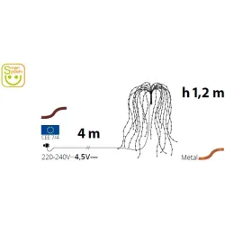 Brązowa opadająca gałąź Micro Willow Branch MicroLED WARM WHITE Ø5mm, stałe światło, 32 formowalne gałęzie z metalowym rdzeniem, miedziany metalowy, bezpieczny transformator niskiego napięcia, IP44 do użytku na zewnątrz i wewnątrz, brązowy, rozmiar 4mt
