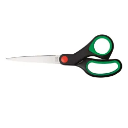 Nożyczki z miękką gumową rękojeścią i stalowym ostrzem.