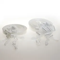 Perłowe kokardki polipropylenowe - elegancja dla każdego pudełka prezentowego. Opis produktu: Perłowe kokardki z polipropylenu to idealne połączenie prostoty i wyrafinowania. Dostępne w opakowaniach po 50 sztuk, te kokardki są przeznaczone do ozdabiania pudełek prezentowych w eleganckim i niewymuszonym stylu. System rzepów pozwala na stworzenie nieskazitelnej kokardki w kilka chwil, po prostu pociągając za jeden koniec wstążki.