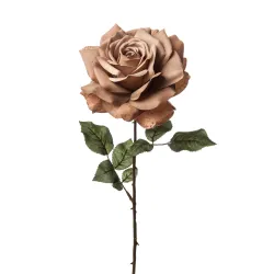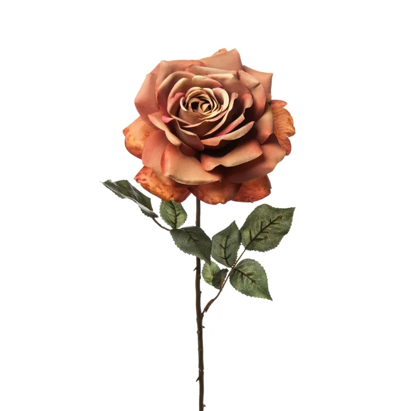 Dzięki delikatnie cieniowanym i aksamitnym płatkom sztuczna róża wnosi wyrafinowany akcent romantyzmu do każdego pomieszczenia. Dzięki doskonałym wykończeniom wiernie odwzorowuje elegancję świeżo rozkwitłego kwiatu, przywołując wdzięk najwspanialszych róż. Wykonany z wysokiej jakości materiałów, pozostaje doskonały przez długi czas, nie wymagając specjalnej pielęgnacji. Możesz wyeksponować go samodzielnie w przezroczystym wazonie, aby wzmocnić jego odcienie, lub połączyć go z innymi kompozycjami kwiatowymi, aby stworzyć imponujący element centralny. Jego ponadczasowe piękno sprawia, że każda przestrzeń staje się bardziej harmonijna, otulając ją kameralną i przyjazną atmosferą. Świetny mały detal, który nadaje elegancji i ciepła, nawet w najbardziej minimalistycznych pomieszczeniach.