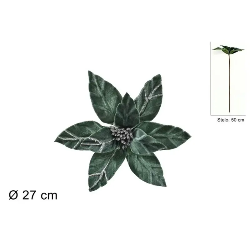 Poinsecja o łodydze o długości 50 cm z aksamitu ozdobiona delikatnym brokatem.