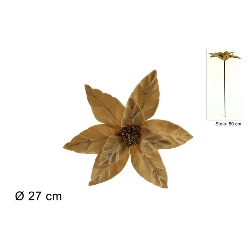 Poinsecja o łodydze o długości 50 cm z aksamitu ozdobiona delikatnym brokatem.