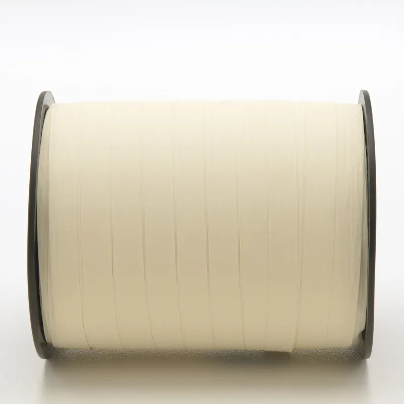 Rozwijając stożek, napotykasz miękki, ale zdecydowany pasek: matowy papier syntetyczny składa się z polipropylenu wypełnionego mikroproszkami, które rozpraszają światło, eliminując lustrzane odbicie typowe dla błyszczących wstążek i nadając aksamitny dotyk zarówno oku, jak i dotyku. Stała grubość, uzyskana przy kontrolowanym wytłaczaniu, gwarantuje równomierne trzymanie: rozciągasz taśmę wokół sztywnego pudełka, a krawędź pozostaje czysta, bez śladów zagnieceń, ale jeśli zgniesz ją ostrzem nożyczek, tworzy elastyczne spirale, które nie zwisają podczas transportu.