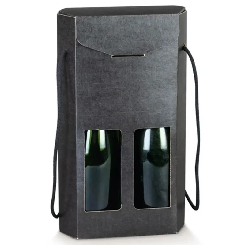 To pudełko z podwójnym okienkiem i uchwytami ze sznurka jest idealnym rozwiązaniem do bezpiecznego i stylowego pakowania i prezentowania dwóch butelek, idealnego na prezenty i do sprzedaży detalicznej.