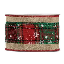 Podwójna wstążka to rustykalna świąteczna ozdobna wstążka, z centralną dekoracją w stylu kraty ozdobioną płatkami śniegu. Mierzy 63 mm szerokości i 10 metrów długości i jest dostępny w wariantach czerwono-niebieskim i czerwono-zielonym. Idealny do obszernych kokardek, doskonale nadaje się do ozdabiania choinek, girland i festonów.