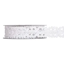 Wstążka szydełkowa o wymiarach 30 x 8 m to wyrafinowana ozdobna szydełkowana koronkowa wstążka, idealna do wzbogacania upominków, pakietów prezentowych, organizacji imprez i kreatywnych dekoracji. Wykonana z wysokiej jakości materiału, posiada delikatny i wyrafinowany tkany wzór, który nadaje każdej kreacji romantyczny i vintage charakter. Dzięki szerokości 30 mm i długości 8 metrów idealnie nadaje się do dekoracji w stylu shabby chic, rustykalnym i eleganckim, dzięki czemu doskonale nadaje się na wesela, chrzciny, komunie i uroczystości okolicznościowe.