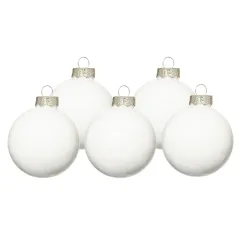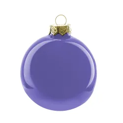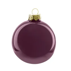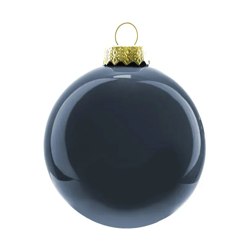 Enfeites de Natal feitos de vidro, com diâmetro de 100 mm e embalados em caixas de 12 peças.