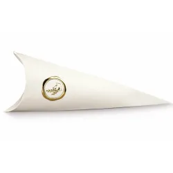 Pack de 10 Cones para amêndoas açucaradas em cartão liso branco com estampado a quente dourado