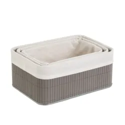 Cesto retangular confeccionado em Bambu Cinza e forro interno em tecido 30% Algodão e 70% Poliéster.