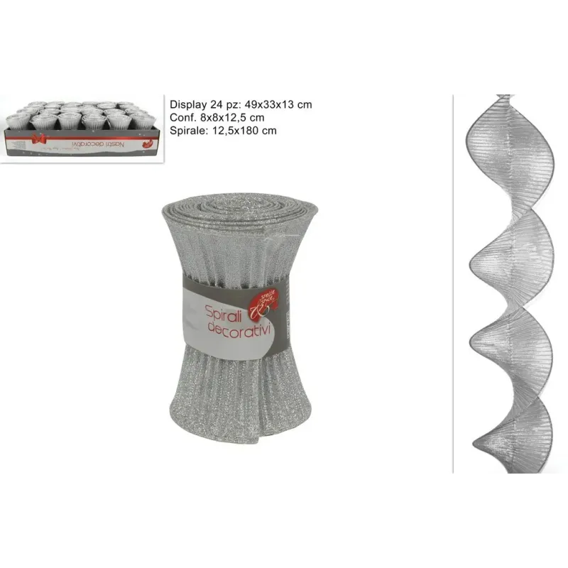 A Decoração de Tecido Espiral é uma decoração de Natal versátil, perfeita para completar decorações em espaços internos ou ambientes festivos. Mede 12,5 cm de largura e 180 cm de comprimento e está disponível em diferentes cores (prata, branco, azul, rosa e vermelho). Esta espiral pode ser usada para enriquecer árvores, paredes ou vitrines com um toque festivo.
