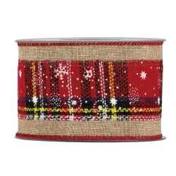 A Fita Dupla é uma fita decorativa de Natal rústica, com uma decoração central em estilo tartan embelezada com flocos de neve. Mede 63 mm de largura e 10 metros de comprimento e está disponível nas variantes vermelho/azul e vermelho/verde. Ideal para laços volumosos, é perfeito para decorar árvores de Natal, guirlandas e festões.
