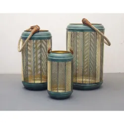 A Lanterna Clark em Metal Decorado Preto e Água-marinha em Três Tamanhos é uma lanterna decorativa elegante com um design refinado, perfeita para iluminar e decorar ambientes internos e externos. Feito de metal decorado, apresenta um sofisticado acabamento preto e água-marinha, que traz um toque de elegância e originalidade a qualquer espaço. Disponível em três tamanhos diferentes, é ideal para acomodar velas ou luzes LED, criando uma iluminação evocativa e acolhedora. Perfeito para configurações de casamento, eventos especiais e decorações de casa, terraços ou jardins, ele se integra facilmente aos estilos shabby chic, vintage e rústico.