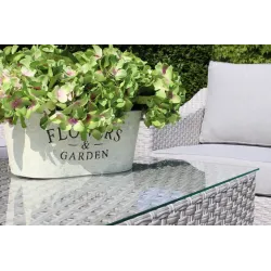 Deixe-se envolver pelo conforto e elegância do nosso conjunto lounge outdoor, composto por um sofá de 3 lugares, 2 poltronas e mesa de centro. A estrutura de vime de alumínio e vime PE oferece uma mistura perfeita de resistência e estilo, garantindo durabilidade e uma aparência atraente. O vime de vime é tecido à mão na estrutura com um resultado de fibra plana. As almofadas acolchoadas de poliéster de 17 cm oferecem um conforto extraordinário, enquanto o vidro de 5 mm de espessura na mesa de centro acrescenta um toque de sofisticação e estabilidade. Com dimensões de cm. 214x91x69 para o sofá, cm. 91x91x69 para as poltronas e cm. 130x60x97,5 Para a mesa de centro, este conjunto foi concebido para se adaptar perfeitamente ao seu espaço exterior. Projetado para relaxar ao sol ou receber amigos e familiares, este lounge é ideal para criar momentos inesquecíveis ao ar livre. Escolha o nosso lounge ao ar livre para transformar o seu jardim, pátio ou terraço num oásis de conforto e estilo, e desfrute do prazer de viver ao ar livre com classe.