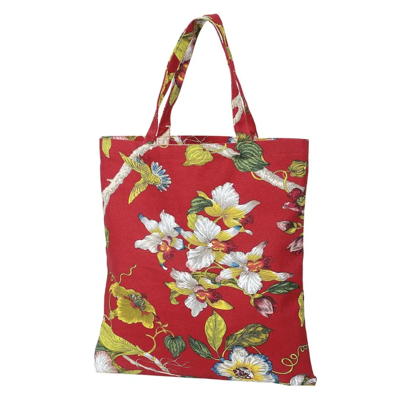 Shopper de algodão muito grosso com estampa floral. Está disponível em três cores: com fundo branco, vermelho ou amarelo pastel. Ideal como gadget para clientes e bolsa de praia.