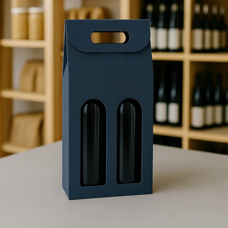 A Caixa de Vinho para 2 Garrafas com Janela em Cartão Resistente é uma escolha elegante e prática para expor e transportar duas garrafas, graças à janela frontal que permite visualizar o conteúdo. Feito de papelão durável, oferece proteção segura e estável, ideal para reduzir o risco de danos durante o transporte. Disponível em várias cores, é perfeitamente adequado para bares, restaurantes, bares de vinho e para embrulhar presentes em ocasiões especiais. A janela adiciona um toque estético refinado, realçando vinhos, bebidas espirituosas ou azeites. A caixa, além de robusta, também é reciclável, representando uma escolha sustentável sem comprometer o estilo e a qualidade.