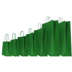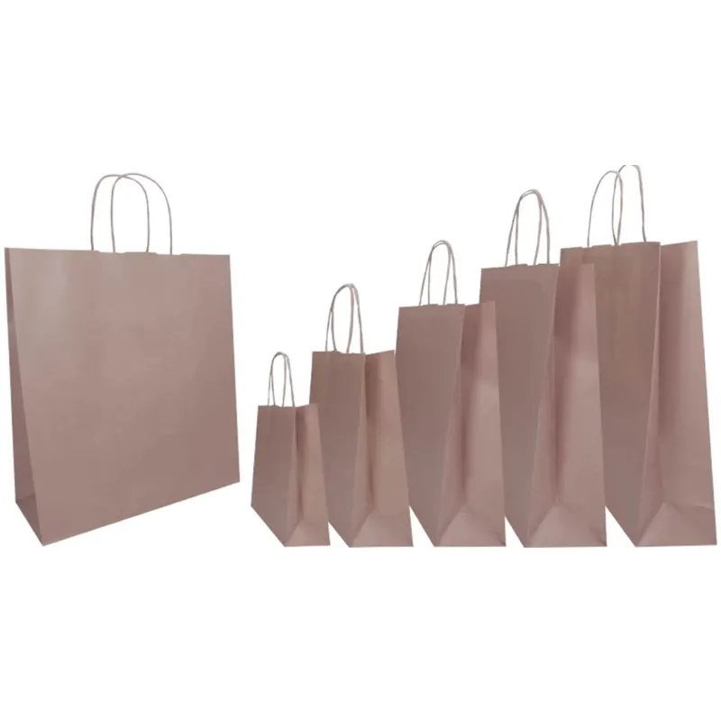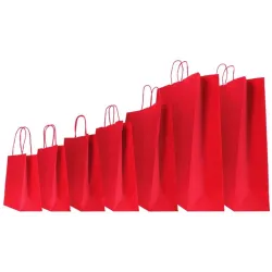 Pacote de 25 Shoppers em papel colorido de alta qualidade com cabo de cordão a condizer. A solução elegante e robusta para a embalagem da sua loja.