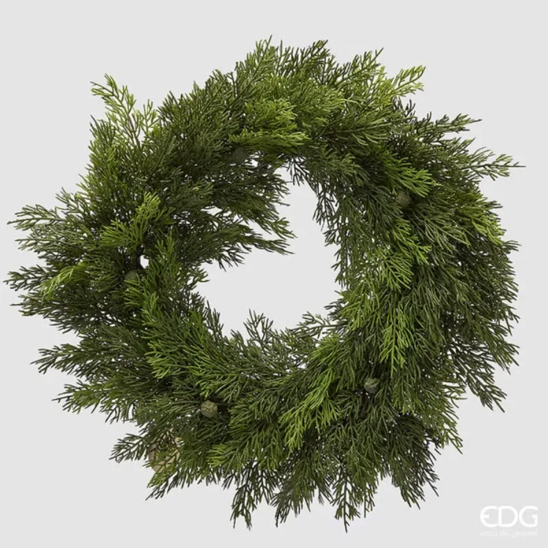 Lägg till en naturlig och festlig touch till din dekoration med vår Thuja Pine Crown, berikad med gröna bär för en realistisk och naturlig effekt. Finns i två storlekar, med en diameter på 35 cm och 50 cm, ger denna krona en mysig och traditionell atmosfär till ditt hem under semestern. Den är tillverkad med omsorg och uppmärksamhet på detaljer och är perfekt för att hänga på dörrar, väggar eller som mittpunkt. Handla nu för att lägga till en touch av fräschör och värme till din juldekoration! Tillverkad av EDG di Enzo De Gasperi: ett tillverkat i Italien företagsledare inom området för designinredningstillbehör, alla EDG-produkter sticker ut för sin originalitet och sin unika stil.
