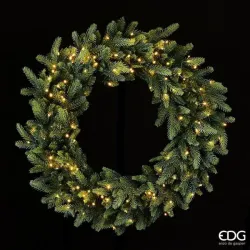 Lyft din juldekoration med den lyxiga gröna kronan med lysdioder från EDG, med en blandning av PE+PVC-grenar och varmvita och utomhus IP44 3.6W 3V0.02A 230VA LED-lampor. C 50HZ-31VD. Kabellängd 5 mt. Med ett urval av 60 och 80 cm diameter ger denna krona en lyxig och traditionell touch till din semestermiljö. Den är tillverkad av högkvalitativa material och representerar excellens inom juldesign. Perfekt för ytterdörrar och väggar. Köp den nu för en touch av elegans i din julinredning! Tillverkad av EDG di Enzo De Gasperi: ett tillverkat i Italien företagsledare inom området för designinredningstillbehör, alla EDG-produkter sticker ut för sin originalitet och sin unika stil.