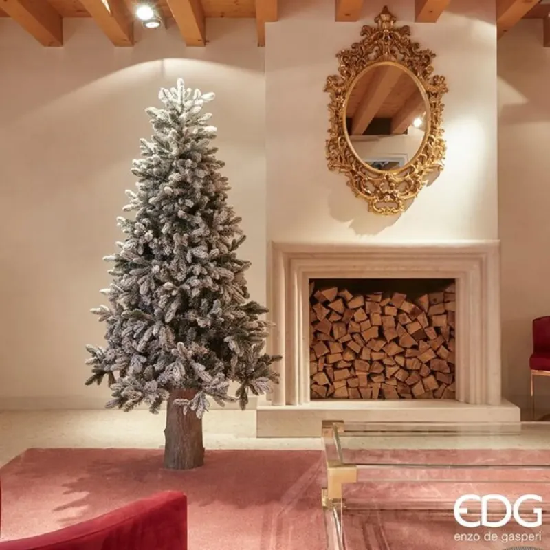 Snöig Merano tall julgran - EDG Enzo de Gasperi. Denna fantastiska snöiga julgran i Merano Pine, signerad av EDG Enzo De Gasperi, är idealisk för att skapa en elegant och förtrollande julstämning. Den är tillverkad av realistiska PE- och PVC-grenar och återskapar effekten av en naturlig snötäckt tall. De täta, detaljerade grenarna, färgade i naturligt grönt och täckta med delikat konstgjord snö, skapar ett träd som förmedlar en känsla av fyllighet och vithet i alla miljöer. Den praktiska paraplyöppningen förenklar monteringen och gör den snabb.