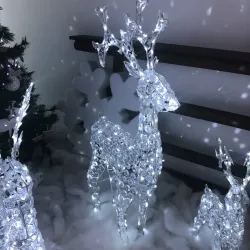 Crystal Reindeer Akryl ACP VIT LED Tillgängliga storlekar 4m + H70cm med 100 lysdioder, 4m + H90cm med 200 lysdioder, 4m + H120cm med 250 lysdioder 3D Art Line, fast ljus, 24V transformator, utomhusbruk, transparent kabel.