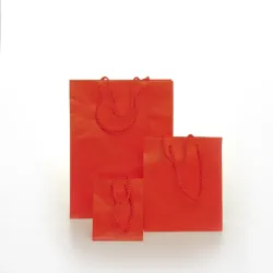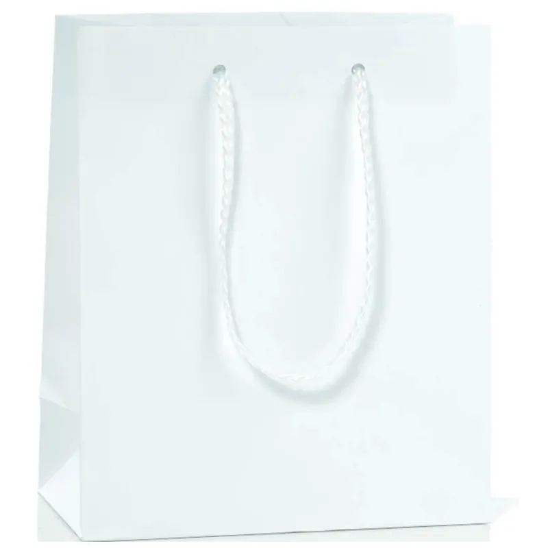 När du vill leverera en dyrbar vara med effektfull förpackning, välj den här lyxiga shoppingkassen: styvt plastbelagt papper med en slät yta som står emot repor och fukt, rullade kanter som behåller sin form, förstärkt baksida på insidan och knutna dragskor i bomull som ger ett mjukt och säkert grepp. Den finns i flera eleganta färger och kommer i praktiska förpackningar om tolv delar, perfekt för butiker, utställningslokaler och ceremonier där detaljer gör skillnad.