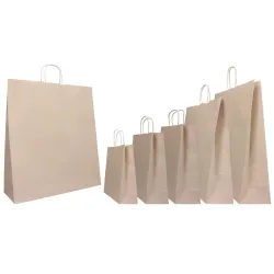 Letar du efter en varumärkesdesign-lösning? Dessa shoppingpåsar utgör en utmärkt grund för gör-det-själv-personalisering: papperets yta rymmer perfekt bläckstämplar, självhäftande etiketter eller dekorativa band.