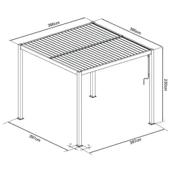 Utforska vårt bioklimatiska pergola trädgårdslusthus för att förvandla ditt utomhusutrymme till en oas av komfort och stil. Denna pergola är tillverkad av högkvalitativa material och erbjuder en elegant och funktionell lösning för att skydda dig från sol och dåligt väder, så att du kan njuta av din trädgård till fullo under alla årstider. Utrustad med ett manuellt solskyddssystem genom sina justerbara lameller, vilket ger den stora fördelen att skydda solljuset genom att släppa igenom luft och skapa behaglig ventilation. Tack vare sin bioklimatiska design kan du justera temperaturen och det naturliga ljuset efter dina önskemål, vilket skapar en perfekt miljö för avkopplande eller underhållande gäster. Med en robust och väderbeständig struktur garanterar vår bioklimatiska pergola hållbarhet och lågt underhåll. Lägg till en touch av lyx och funktionalitet till ditt utomhusutrymme med vårt bioklimatiska pergola trädgårdslusthus, tillgängligt nu i vår webbutik. Handla idag och förvandla din trädgård till en plats för lugn och skönhet.
