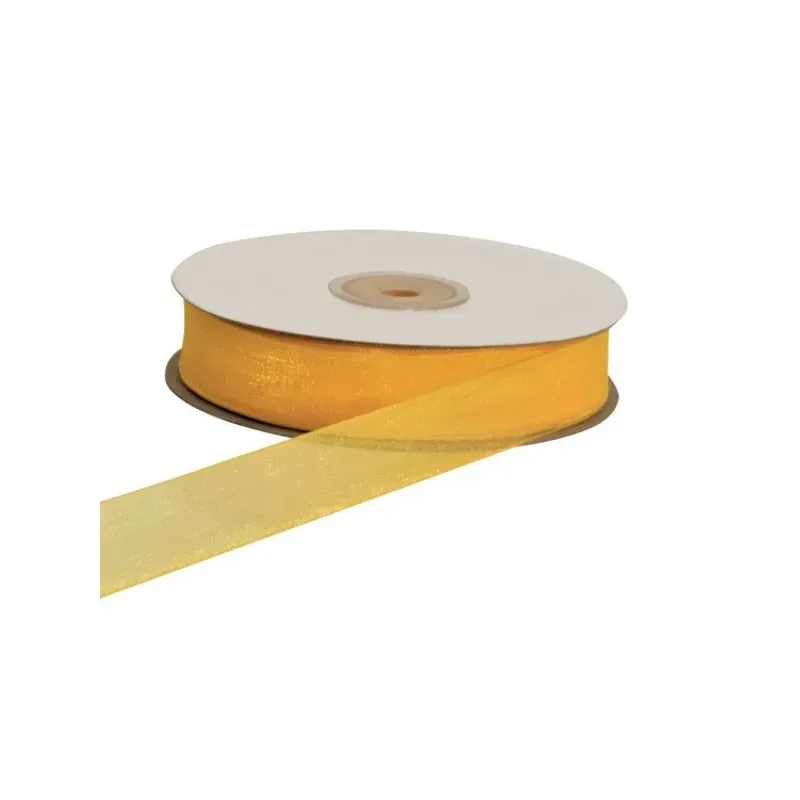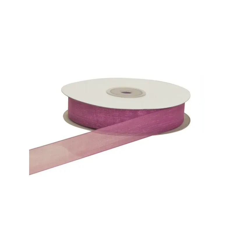 Detta transparenta och lysande organzaband har en tunn kant som förstärker kanterna och håller profilen spänd. Det lätta polyestertyget andas, reflekterar ljus med en delikat sideneffekt och formar sig till fluffiga flingor som håller sig öppna utan att hänga. Den 25 meter långa konen säkerställer kontinuerlig jämnhet: du klipper den längd du behöver, rullar, knyter och rosetten sätter sig omedelbart, redo att försköna favoriter, presentförpackningar, buketter eller modeaccessoarer i en rad mjuka och ljusa färger som finns i olika höjder.