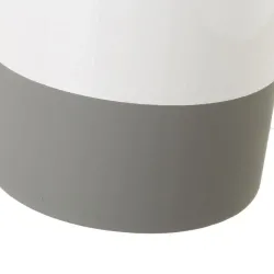 Modern keramisk vas gjord i vitt med en frigöring av grått. En rosett i munnen som tar upp samma gråa som botten, och som ger en enkel, ren men mycket fin och elegant luft.