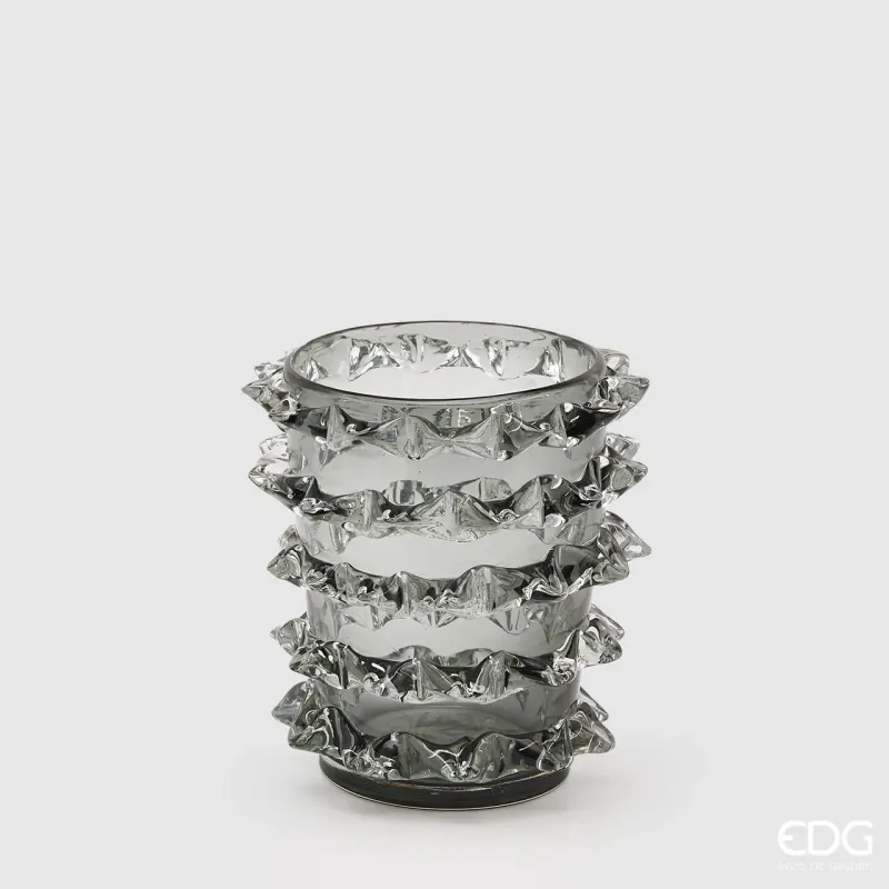 Glasvas, utsmyckad och unik med yttre spetsar, med en isig och ultraljus effekt.
