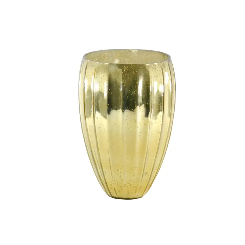 Anita vas i guld och silver fasetterat glas: ett dekorativt föremål med en dyrbar karaktär, designad för att ge ljus och förfining till alla miljöer. Glasets mångfacetterade utförande skapar spel av eleganta reflektioner, som förstärks av den metalliska finishen i guld- eller silvertoner. Den finns i två storlekar och passar perfekt till både blommiga kompositioner och som en enda möbel.